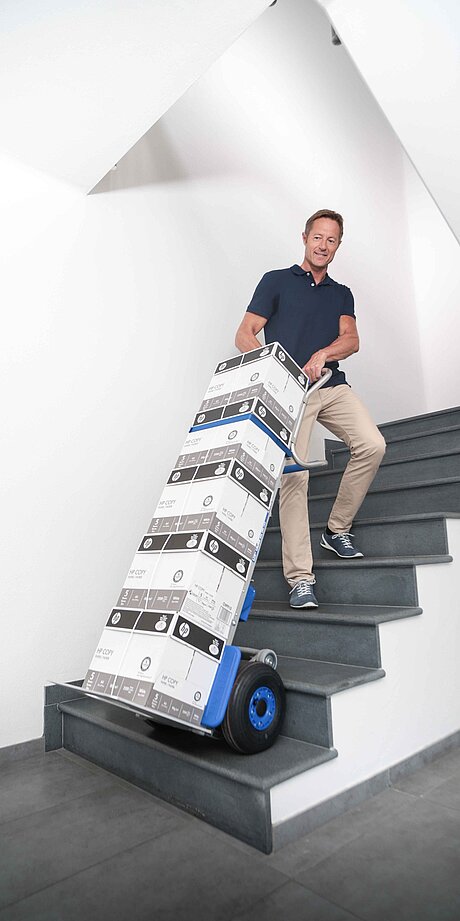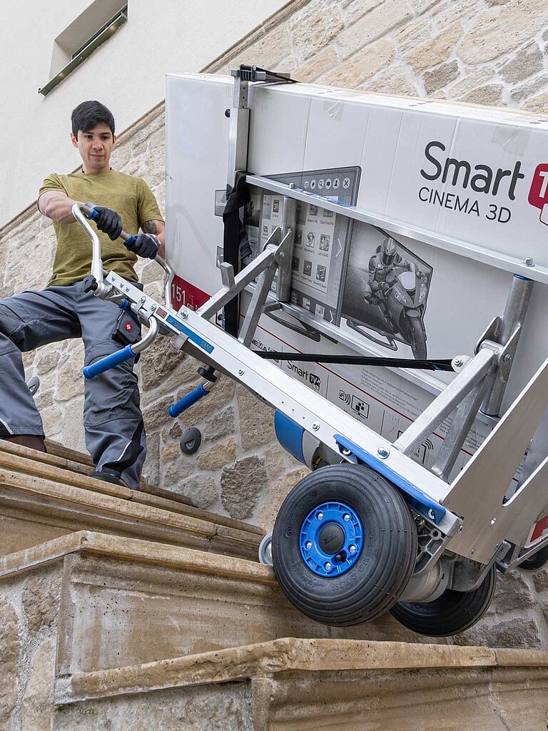 Our electric stairclimbers from the LiftKar SAL and NEO LiftKar SAL line revolutionize the logistics and transport of parcels in various sizes and weight categories. No matter how many stairs need to be conquered, our stairclimbers enable the effortless transportation of parcels weighing up to 170 kg, with an astonishing autonomy of up to 2000 steps.
