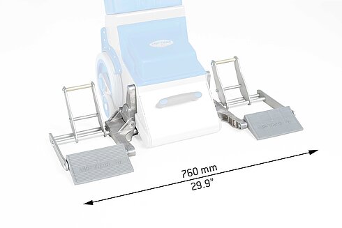For self-propelled wheelchairs and transport chairs: simply roll onto the platform and secure in place with the retention clamp. Apply the wheelchair brakes, and you are ready to go!