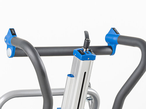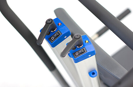 The stairclimber doesn't start moving down steps until the brake wheels on the lifting mechanism have reached the next step. With this level of safety, the LiftKar PT S can be manoeuvred relaxed and confidently with an upright posture and without straining your back. The handle unit is easy to adjust and is equipped with anti-slip material. Use the robust crossbar to support and hold the unit. With UP/DOWN switches on both hand grips, the LiftKar PT S does not need to be adapted when changing between left- and right-handed operators. Choose between three climbing speeds, depending on the nature of the stairs: 10, 14 or 18 steps per minute.